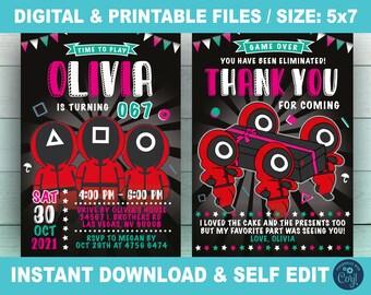 Squid Game Birthday Invitation Customizable Template Diy Bobotemp